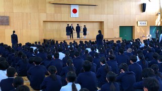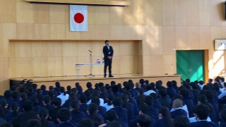 生徒指導主事のお話から始まり、後期委員長の任命式や美中賞などの表彰を行いました。