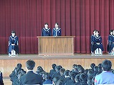 これまでの生徒会経験者や、小学校での児童会経験者ばかりでなく、中学校の経験を経てみんなのために働きたいと立候補した人など、様々な考えで立候補したみんなが、自分の思いを、全校生徒に向かって表明しました。