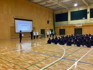 11/14(木)、2年生は、岐阜タンメンBBC様から講師の方に来ていただき、来週の勤労体験学習に向けてのマナー講習会を行いました。2人1組での伝言ゲームや、寸劇なども取り入れながら、働くうえでの挨拶・返事・協調性の大切さを楽しく学ぶことができました。朝礼での声出しを思い出して、3日間しっかり声を出して頑張りましょう!