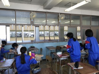 様々な龍の作品が教室中に展示された様子は迫力があり、どの生徒も真剣に作品と向き合っていました。