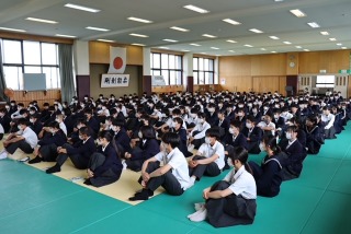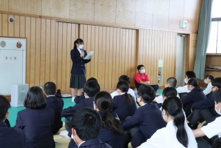 今日は修学旅行前の学年集会を行いました。学年代表の生徒は「思い出に残る最高の修学旅行にしよう!」と力強く意気込みを語りました。