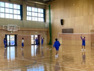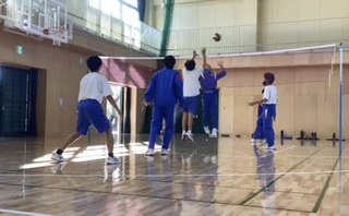 2年生の男子は体育館でネット型の競技であるバレーボールや、バドミントンを行っています。
