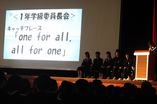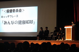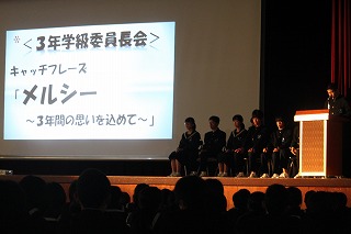 生徒会役員が司会進行を務め、各委員会・各学年の学級代表がキャッチフレーズの紹介や、生徒からの質問に返答をしました。