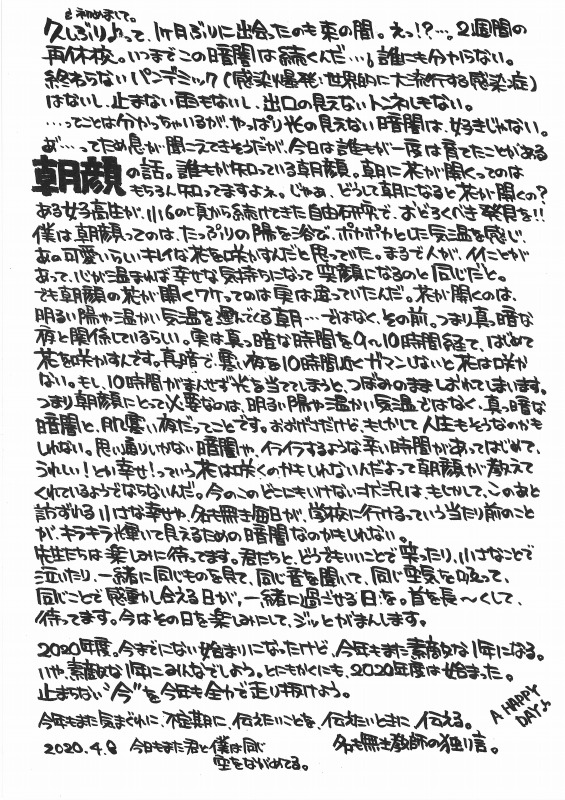 3回目の集い。今年度は1年生が参加しました。多くの皆様のご賛同とともに、温かいご支援をいただきました。本当に、ありがとうございました。