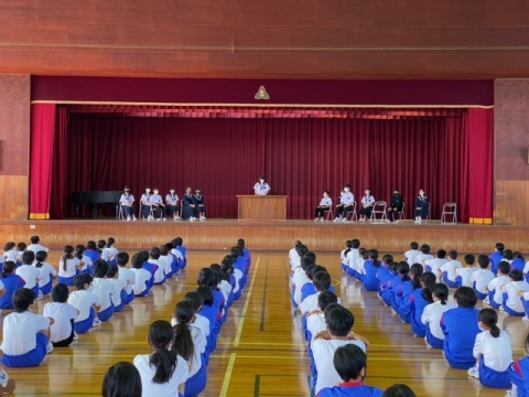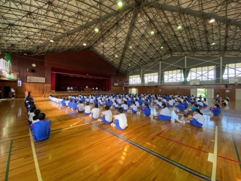 今回は密を防ぐため、学年ごとに分けて、3部制で行いました。