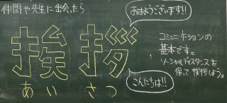 今、1年生の昇降口の黒板には挨拶の大切さが書かれています。