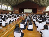 海部地区大会の総会が行われました。大会に参加する各部の部長から、目標や大会に向けての意気込みを発表されました。