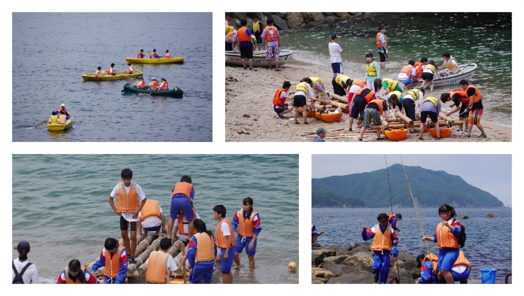 カッター漕艇は、若狭湾青少年自然の家のメインの活動です。みんなで力を合わせて、カッターで沖に出ます。磯釣りは、小さいながらもたくさんの魚を釣ることができました。組み立て式いかだでは、海に落ちてしまうこともありましたが、みんな楽しく活動をしています!
