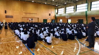 体育館で全校朝礼がありました