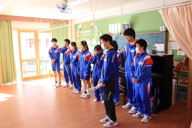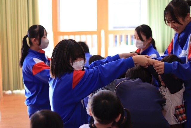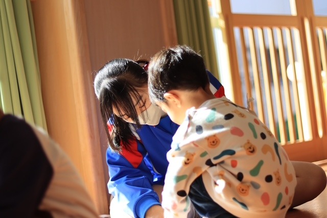 生徒の振り返りには「遊びを一緒にやってくれてうれしかった」や「園児のかわいさに癒された」などの記述があり、普段味わえない達成感や充実感をこの実習で得られたようです。また、「保育士さんの動きや声掛けのすごさを体感し、もっと学びたい」などと、今後に向けた課題も見つかったようです。