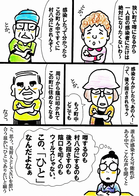 もうひとつは、不安や差別から広がる人の心による感染です。