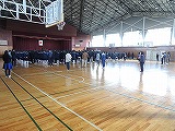 そうです、生徒の後ろに誰もいないフロアが広がっているのです。3年生が卒業したため、今までの位置から1,2年ともひとつずつ学年が上がった場所に移動したため、1年生がこれまでいた後ろが大きくあいたのです。