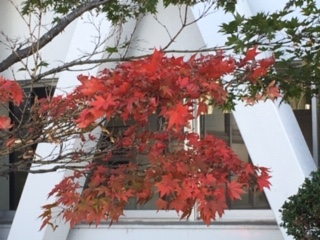 美和中の玄関横には、秋の色が鮮やかに輝いています。