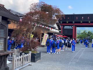 2日目午後は伊勢忍者キングダムへ行きました。手裏剣や弓矢の体験や、本格的なアスレチック、忍者屋敷など、おもしろい施設が沢山ありました。忍者の役者さんと実際に勝負したり、謎解きをしたりして園内を回る「リアルRPG」は、ゲームの中に入り込んだようで、とても楽しそうにしていました。