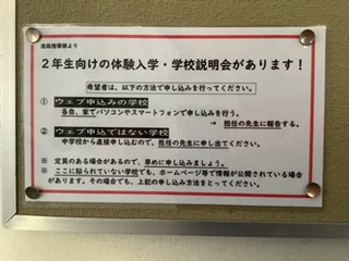 来年度に向けて、高校の見学会の案内が掲示されています。