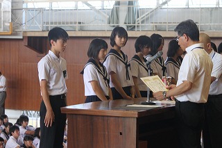 1年生の表彰の様子です