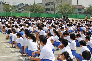 3時間目と4時間目の間の休み時間に避難訓練を行いました。