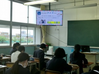 「総合的な学習の時間」に、1年生は「持続可能な開発目標(SDGs)」について、映像資料を使い、学びました。