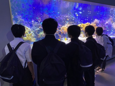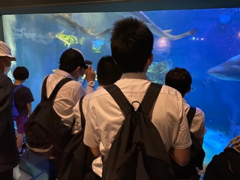 鳥羽水族館で班別分散を行いました。メディアで話題のラッコのメイちゃんや、日本で唯一飼育されているジュゴンなどを見ることができました。この後はクラスごとに作る系の体験活動に向かいます。
