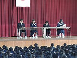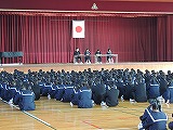 昨日の朝礼の後で、一,二年生が残って臨時生徒総会が開かれました。来年度の生徒会の規約改正を行うためです。来年度からの規約ですので、一,二年生のみの総会でした。