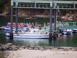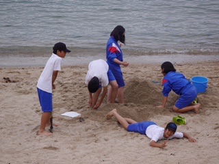 今日は、天気も良く、海の活動で、「カッター漕艇」「磯釣り」「組み立て式いかだ」「砂の造形」「ハイキング・磯観察」を行います。どの活動も楽しそうに取り組んでいました!