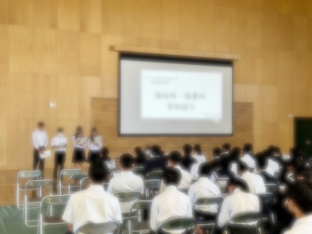 3年生は17日(金)に上級学校説明会を行いました。美和高校、愛西工科高校、津島北翔高校、佐屋高校、杏和高校の先生や生徒さんに来ていただき、学科について教えていただきました。生徒はメモを取りながら真剣に聞いていました。