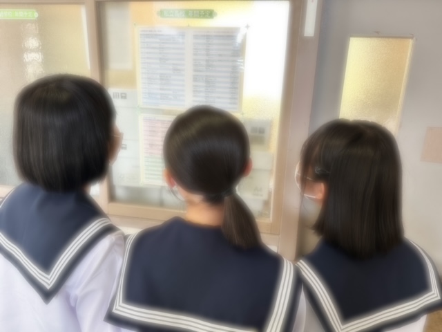 3年生には進路だより「道 ~夢ある進路を自分のものに~」を配付しています。先週から昨日までに配布した7号~10号の「道」で、私立高校、県立高校、名古屋市立高校の体験入学の一覧が掲載されています。また、廊下にも日程一覧が貼られています。これを見れば、今年度の体験入学のほとんどの日程が分かります。この時期は、「気になったら見に行く!」ということがとても大事です。気になる高校の体験入学には積極的に参加しましょう。