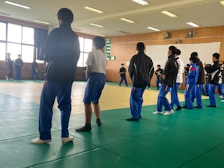 2年生の保健体育では、ダンスの単元で日本の民踊を学習しています。野外学習で行った岐阜県で有名な郡上踊りの一つの『春駒』を練習しました。今日は、徹夜踊りのように、『1時間踊り』と題して、30分間楽しく踊り続けることができました。