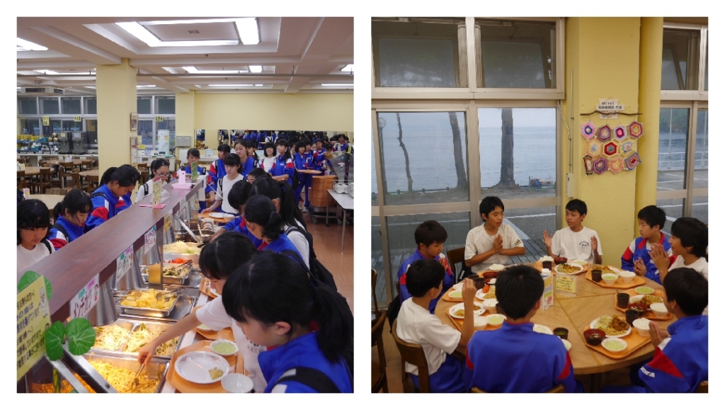 若狭湾青少年自然の家の食事はたいへん美味しくて、ついつい食べ過ぎてしまいます!バイキング方式で、何度もおかわりする子どもたちがたくさんいます。野菜など、バランス良く食べてくれれば良いのですが・・・