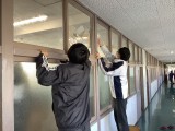 3年生の教室の掃除や黒板の飾りつけ、式場である体育館の準備など、2年生が中心となって進めました。