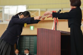 卒業証書授与では、担任からの呼びかけに対して力強く返事する卒業生の姿がみられました。