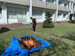 まだまだ暑い日が続いていますが、学校の中庭にはすでに落ち葉がたくさん落ちています。