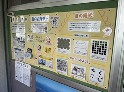 目の愛護デーです。職員室前に、養護教諭の先生が作った掲示物があるのでぜひ読んでみてください。スマホをつかうときの適切な距離がわかる模型もありますので、ぜひ体験してください。