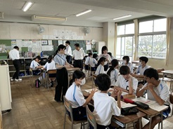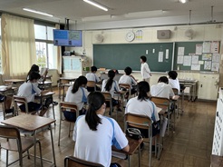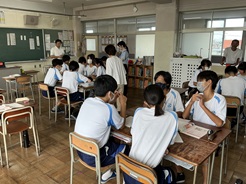 道徳推進教諭による道徳の授業の様子です。教育実習生も参観し、教師や生徒の様子を熱心に観察していました。生徒たちも考え、議論しながら授業に参加していました。