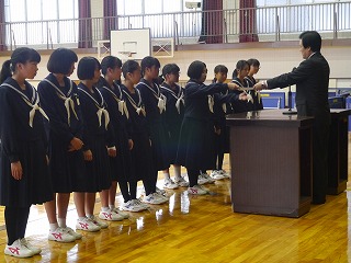 税に関する作文の表彰とソフトボール部の表彰がありました。