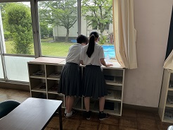 昼休みの進路室の様子です。3年生が進路情報誌を見ながら、話しをしていました。