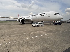 管制塔とJALの最新機です。「百聞は一見にしかず」ですね。