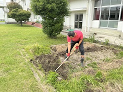 ただいま、中庭に農園を開墾中です。来校された際は、進捗状況をぜひご覧ください。ウリ科の栽培を検討中です。