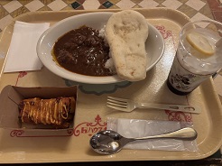 お昼といえば、カレーですね。ナンの下にご飯が見えるのがナンとも言えません。
