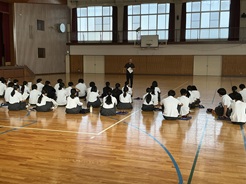 3年生の学年集会の様子です。10月22日(水)から、愛知県内で公立高校のweb出願の練習が始まります。生徒に文書を配付しましたので、各ご家庭でよく読んでいただき、お試しください。