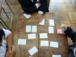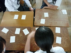 洗濯表示マークをカルタ風の遊びにして、学習していました。