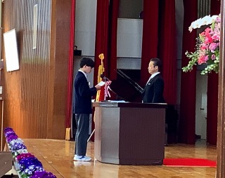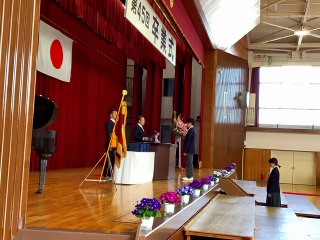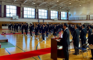 来賓、代表の在校生、保護者、教職員が見守る中、卒業証書授与では、卒業生53名が担任から呼ばれる名前に心を込めて返事で応えていました。送辞、答辞では三年間の中学校生活の日々が、昨日のことのように思い出され心に響きました。三年間の日々の積み重ねを旅立ちの歌として、『正解』を合唱しました。答えのある問いばかりではないこれからの人生。答えがない悩みに対して、正解は自分で探しに行くんだという勇気を感じました。