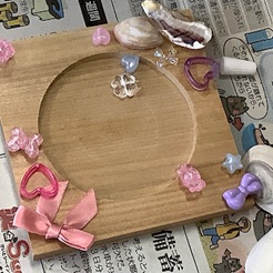 海辺で拾った貝殻などで思い思いの作品を作っています。