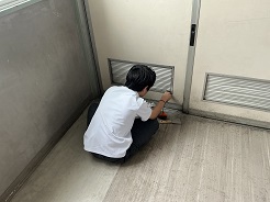 清掃時間中の一コマです。特別教室のドアの冊子の部分の汚れをきれいにしてくれていました。この視点と、気配りが素敵です。