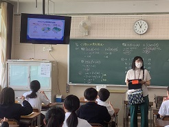 給食の時間を利用して栄養指導が行われています。本日は1年A組で指導が行われ、その効果もあり見事に完食していました。