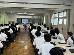 学年集会の様子です。自分の定期テストの振り返りシート『努力の実り』が配付されました。これから自分の成績を記録し、課題を見つけ、よりよい学習を進めていきましょう。また、6月19日に行われる福祉実践教室の体験希望調査も行いました。