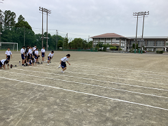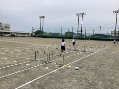 1年生のハードルでは、走りの「リズム」をつかみ、調整する学習に取り組んでいます。