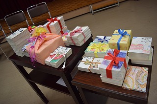 あま市役所で、東日本大震災によって愛知県へ避難されている方々へむけて、絵手紙をお渡しし、お話を聞いたりしました。