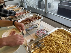 ホテルの朝食といえばバイキング。好きなものばっかりじゃあなくて、バランスよく食べましょう。