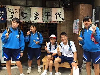 サンプルを見たり、おやつを食べたり、郡上の町を満喫中です!